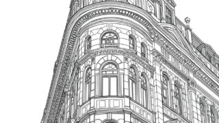 【大人の塗り絵無料】:街並みと建物を描くアーバン線画