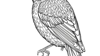 【大人の塗り絵無料】:小鳥と羽根のエレガントな線画塗り絵