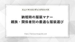 終活・葬儀 納棺時の服装マナー:親族・関係者別の最適な服装選び 納棺の儀にふさわしい服装マナー 納棺の儀は故人との最後のお別れとなる厳粛な場であり、服装マナーを守ることは故人への敬意と... 終活・葬儀