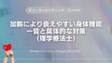 | 筋力・バランス低下 | 脚の筋力低下、ふらつき | バランス運動や筋トレ、スクワットなど |